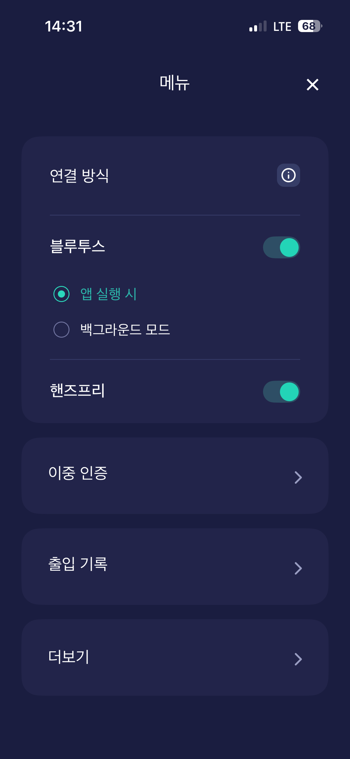 백그라운드 모드: 앱이 백그라운드에서 실행 중이라면 휴대폰이 잠겨 있어도 출입문을 열 수 있습니다.