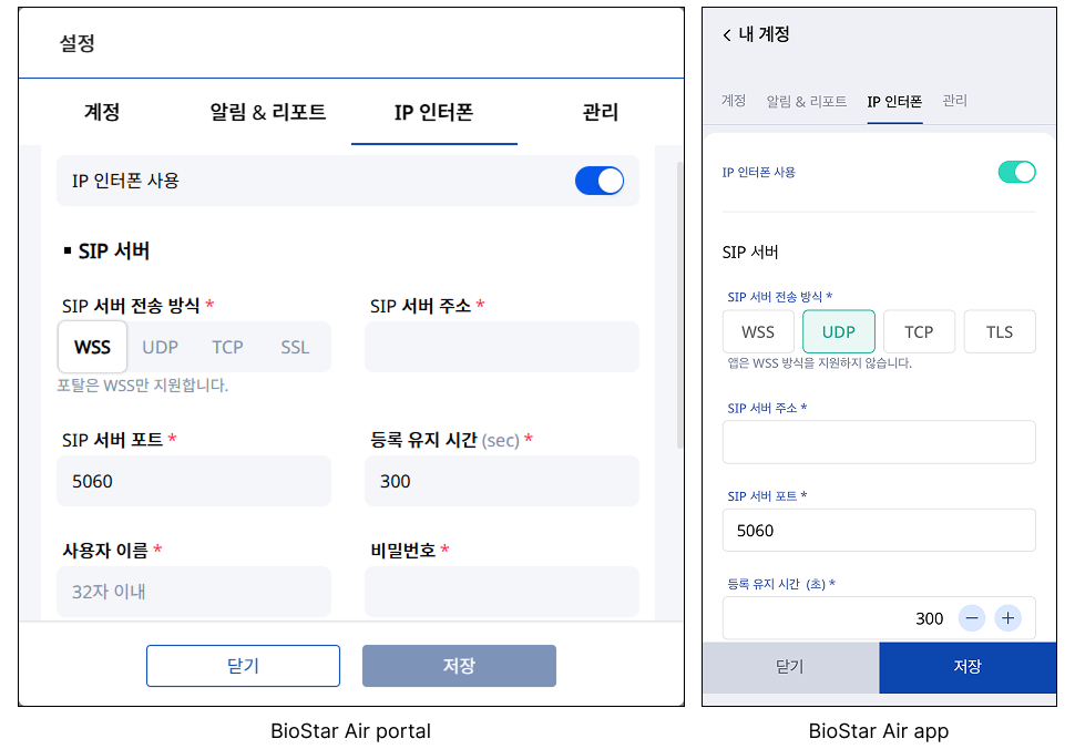 위 이미지는 예시 화면입니다. 실제 화면과 다를 수 있습니다. - SIP 서버 주소