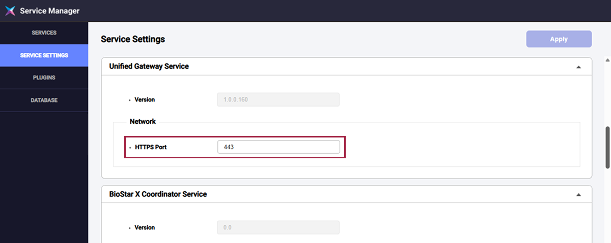 Unified Gateway Service 섹션의 HTTPS Port 입력 필드에서 변경할 포트 번호를 입력하세요.