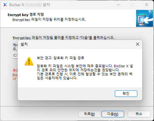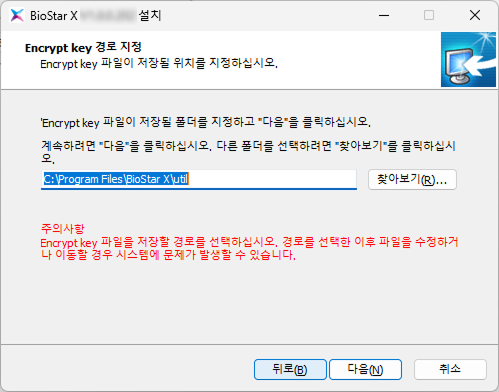 BioStar X를 삭제하면 암호화 키 파일도 함께 삭제합니다.