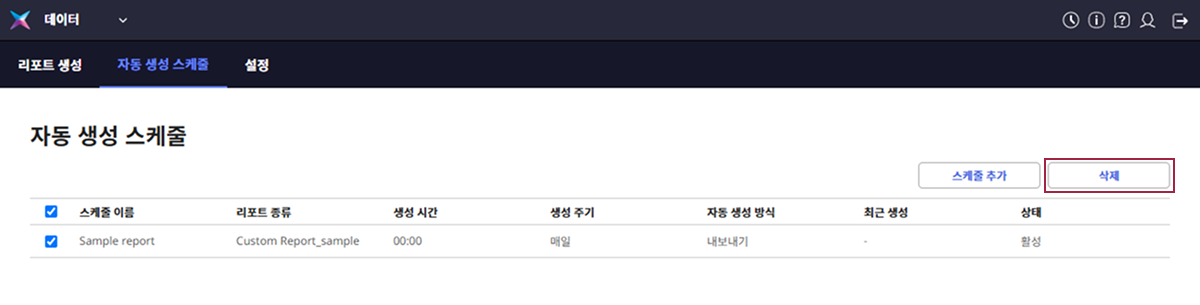 리포트별 자동 생성 스케줄을 설정할 수 있습니다.