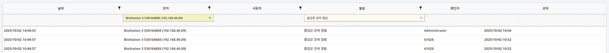 조회 목록의 헤더 부분에서 원하는 조건을 설정하여 목록을 필터링할 수 있습니다. 날짜를 제외한 모든 항목에 조건을 설정할 수 있습니다.