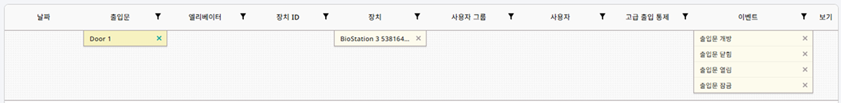 설정한 조회 조건을 해제하려면 헤더 부분 아래에 설정된 조건에서 버튼을 클릭하세요. 설정한 조건이 해제되고 모든 이벤트가 목록에 다시 표시됩니다.