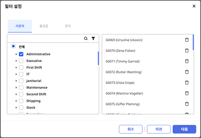유효기간 만료 사용자: 유효 기간이 만료된 사용자를 조회할 수 있습니다.