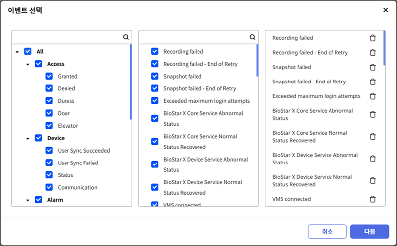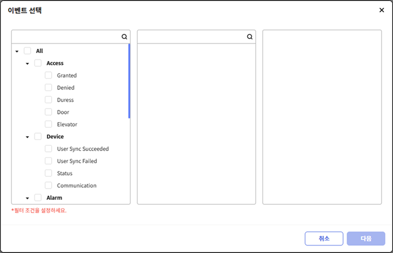 원하는 이벤트 선택을 완료하면 다음 버튼을 클릭하세요.