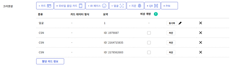 크리덴셜 항목을 수정하려면 버튼을 클릭하고, 삭제하려면 버튼을 클릭하세요.
