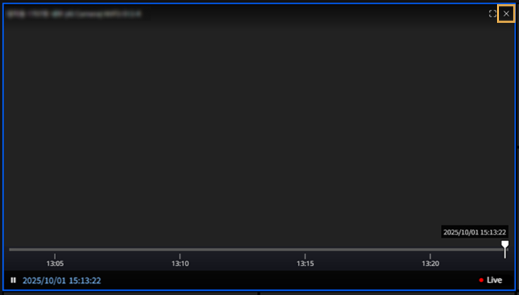 비디오 타일에 배치한 영상은 기본적으로 실시간 재생됩니다. 영상의 재생 도구를 통해 영상을 멈추거나 과거 시간의 녹화된 영상을 조회할 수 있습니다.