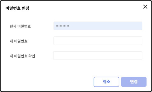 사용자는 BioStar X에 로그인한 후 본인의 비밀번호를 변경할 수 있습니다.