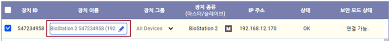 등록할 장치의 이름을 변경하려면 장치 이름 열에서 버튼을 클릭한 뒤 변경하세요.