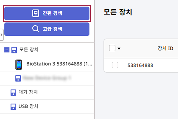 장치 목록에서 간편 검색 버튼을 클릭하세요.