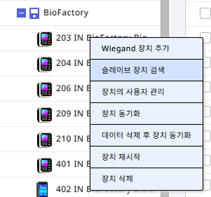 팝업 메뉴에서 슬레이브 장치 검색를 클릭하세요.