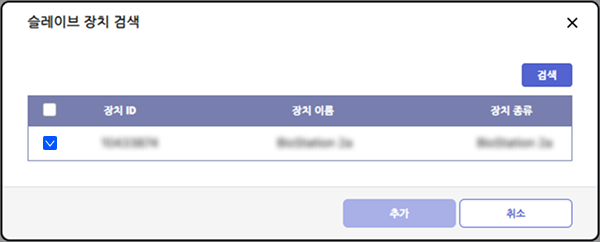해당 마스터 장치에 연결된 슬레이브 장치 목록이 나타나면 등록할 장치를 선택하세요. 원하는 장치가 없다면 오른쪽 상단의 검색 버튼을 클릭하세요.