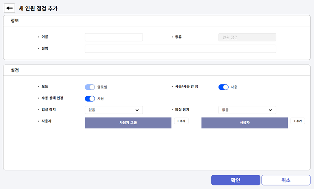 인원 점검 설정을 위한 세부 항목은 아래와 같습니다.