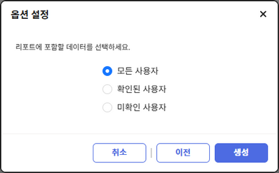 옵션 설정 창에서 보고서에 포함할 데이터를 선택한 후 생성 버튼을 클릭하세요.