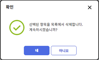 삭제 확인 팝업창을 확인하고 네를 클릭하세요.