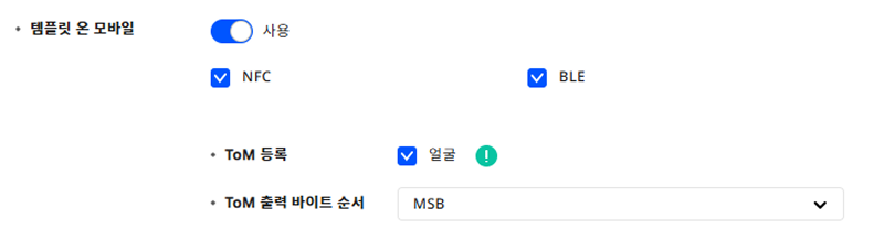 템플릿 온 모바일의 인식 방법과 사용자가 장치에서 직접 등록할 바이오메트릭을 지정하고 바이트 순서를 설정할 수 있습니다.