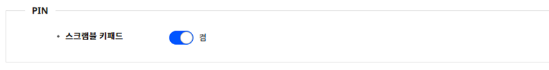PIN 그룹에서는 장치의 PIN 인증을 위해 스크램블 키패드 옵션을 켜거나 끌 수 있습니다.