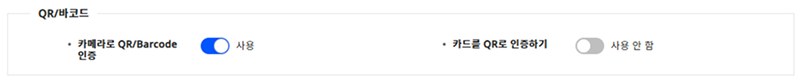 카메라로 QR/Barcode 인증: 장치의 카메라를 통한 QR/바코드 인증 사용 여부를 설정하세요.