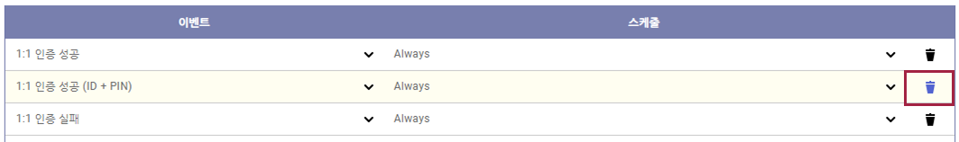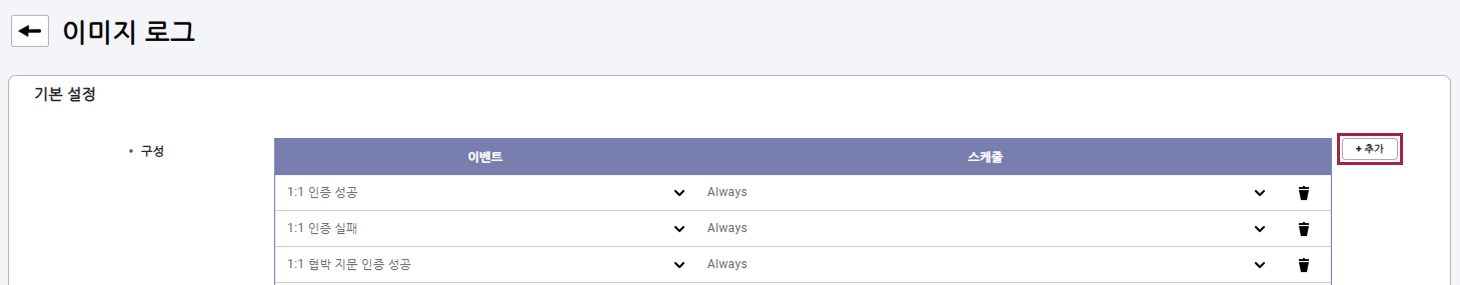 기존에 설정한 이미지 로그의 이벤트와 스케줄을 삭제할 수 있습니다.