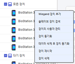 재연결: 선택한 장치를 재연결할 수 있습니다. 한 개의 장치를 선택했을 때 사용할 수 있습니다. 이 기능은 BioStar X와 연결이 끊겼을 때 사용할 수 있습니다.