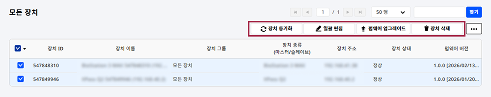 모든 장치 목록에서 장치를 선택하고 마우스 오른쪽 버튼을 클릭하세요. 또는 장치 목록에서 원하는 장치의 체크박스를 클릭하세요.