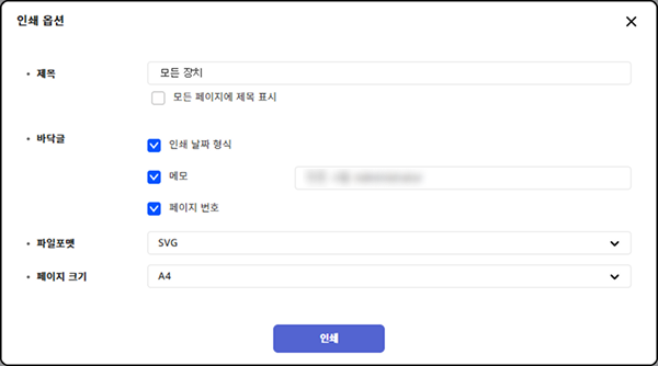 장치 목록을 PDF 또는 SVG 파일 형식으로 저장해 인쇄할 수 있습니다.