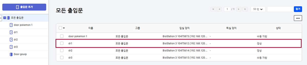 출입문 목록에서 그룹에 추가하기