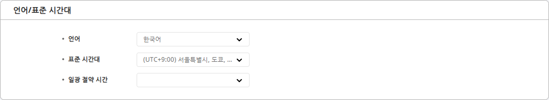 언어/표준 시간대: 인터페이스 언어 및 시간대, 일광 절약 시간
