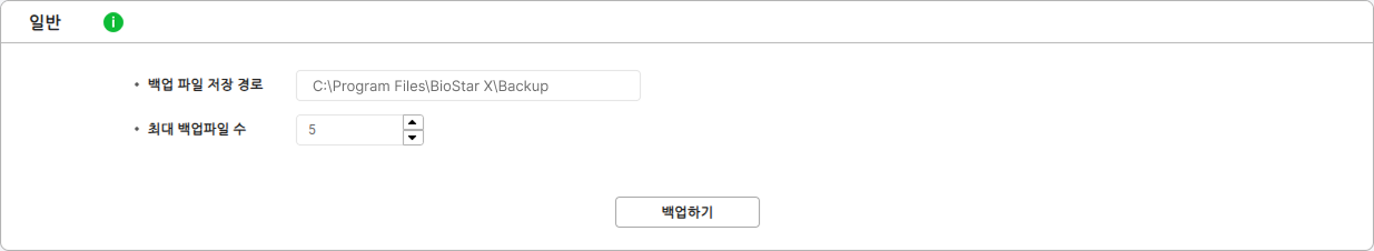 백업 파일은 일반 섹션의 백업 파일 저장 경로 옵션에 지정된 경로에 zip 파일 형식으로 저장됩니다. 파일 이름은 BioStar_X_Backup_YYYYMMDD_HHMMSS.zip 형식으로 생성됩니다. 여기서 YYYYMMDD는 백업 날짜, HHMMSS는 백업 시간입니다.
