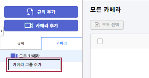 카메라 그룹을 추가해 여러 대의 카메라를 그룹으로 묶어 관리할 수 있습니다.