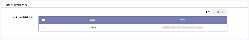 연동 추가 창이 나타나면 출입문을 선택하고 해당 출입문과 연관된 카메라를 선택하세요.