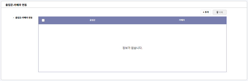 출입문-카메라 연동 섹션에서는 출입문과 카메라를 연동하여 출입문에서 이벤트가 발생할 때 연결된 카메라의 영상과 함께 VMS 서버에 전송할 수 있습니다. 이를 통해 출입 이벤트와 관련된 영상을 쉽게 확인할 수 있습니다.