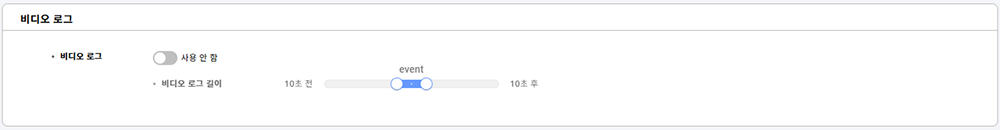 비디오 로그 길이: 이벤트 발생 시점을 기준으로 10초 전후의 영상을 기록할 범위를 설정하세요. 최대 60초까지 설정할 수 있습니다.