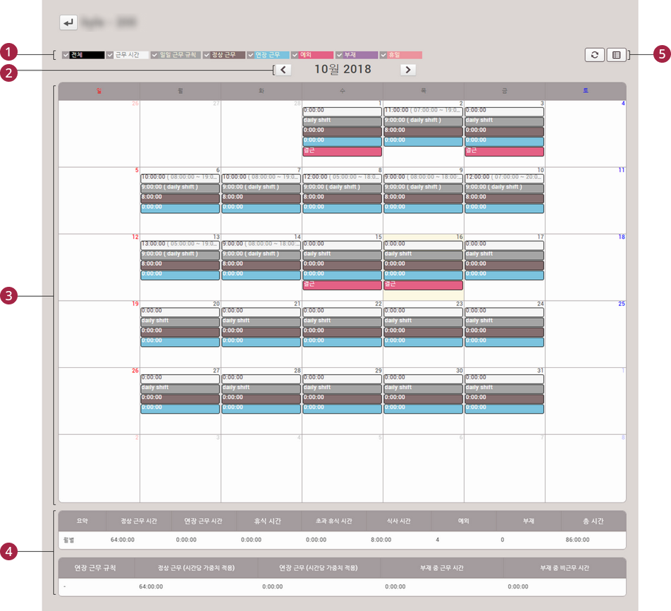 : 근태 기록을 달력 형식으로 확인할 수 있습니다.