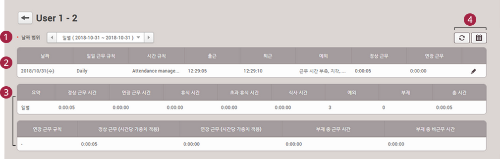 일별 근태 기록: 일별 근태 기록을 확인할 수 있습니다.