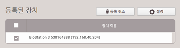 설정 → 장치 메뉴에서 등록한 장치를 삭제하면, 등록된 근태 관리 장치도 자동 삭제됩니다.