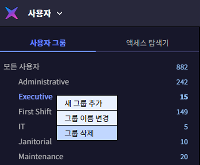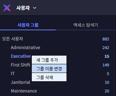 개별 사용자마다 출입 권한을 설정하는 대신, 부서별 또는 역할별 사용자 그룹을 만들어 동일한 권한을 한 번에 적용할 수 있습니다.