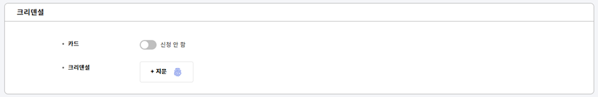크리덴셜 섹션에서 출입 수단을 설정하세요.